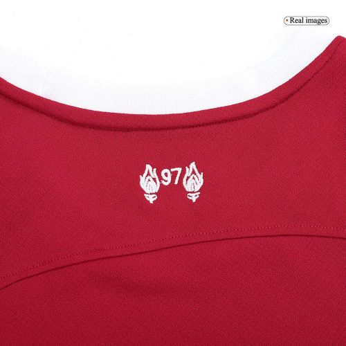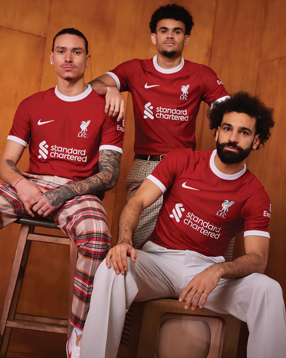 The Nike Liverpool 2023-24 home jersey is reminiscent of the home kit produced by Reebok that was worn from 1998 to 2000, thanks to its no frills design and white crew neck and cuffs, which itself was based on similar shirts from the 60s and 70s.